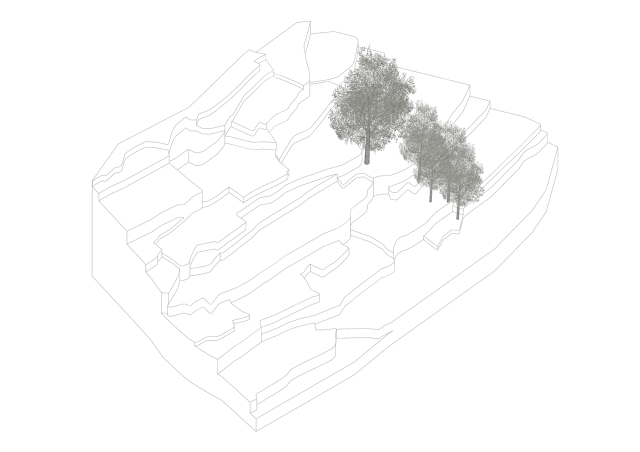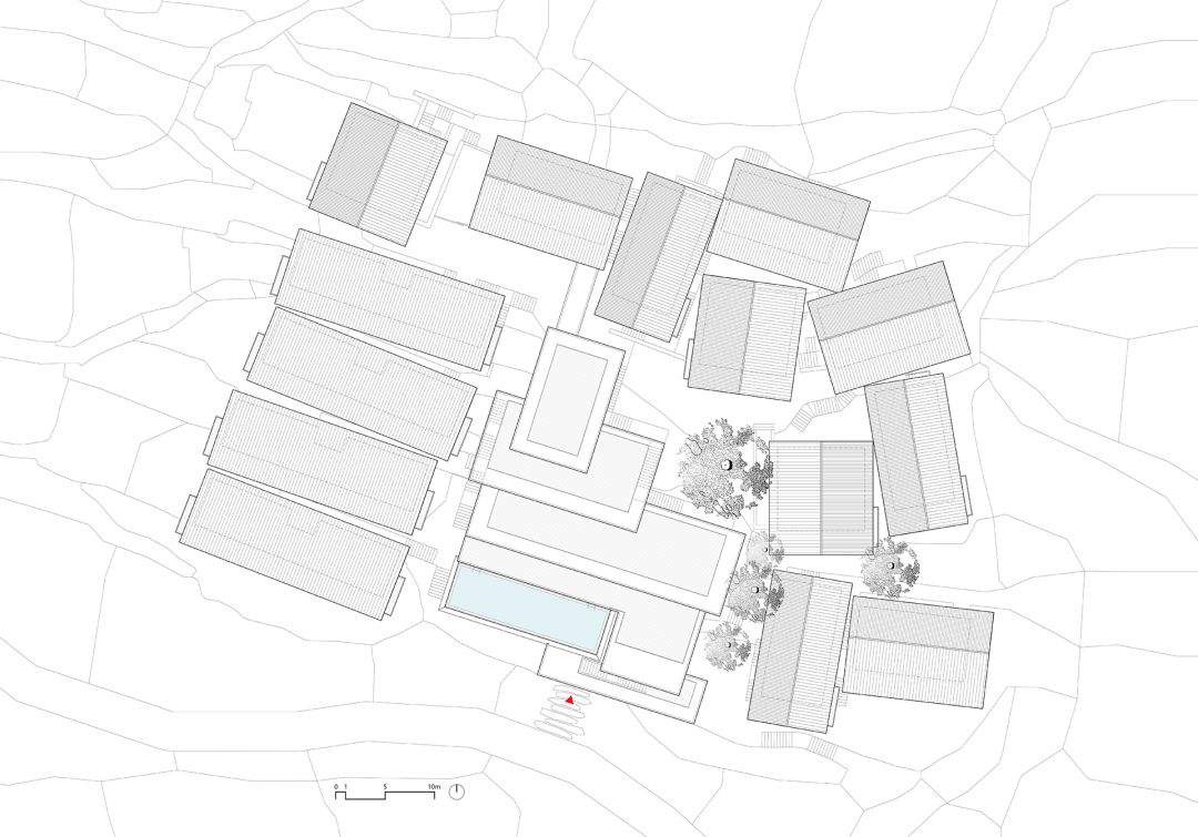 为此,团队多次去到现场踏勘测绘,对古树与古道进行准确定位,不同台地的原始标高反复确认,最终设计布局是在对无数种可能性进行尝试之后,最契合于地块的答案,以秉承最低程度破坏自然的原则。