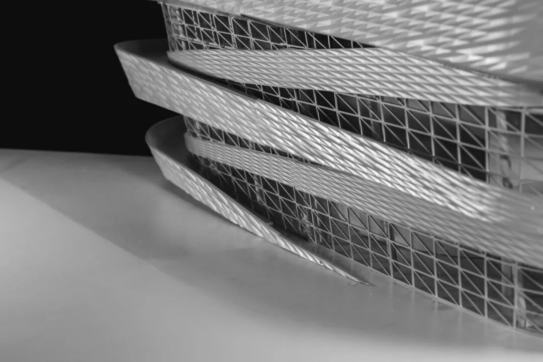 建筑造型中的螺旋廊道直接反映设计理念的真实逻辑,而立面语言则从钱塘江古海塘五纵五横的模块化筑塘法中得到启示。