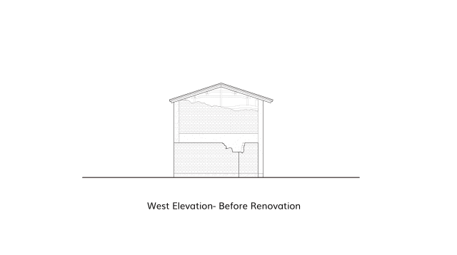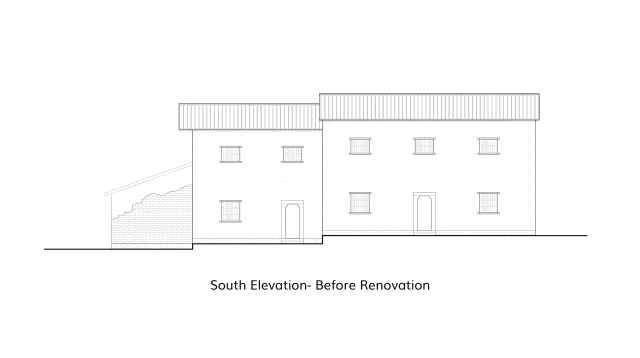 为了最大程度保留原有墙体,土墙与新建结构脱离,避免土墙承重;二层由于室内高度增加,屋面整体抬升,檐口以下新建外墙以幕墙形式外挂,受力于主体钢结构。当地农民施工队运用传统手工技艺修复还原土墙,室内墙面喷涂保护层。原有外墙的入口门洞以及石头门套完整保留。