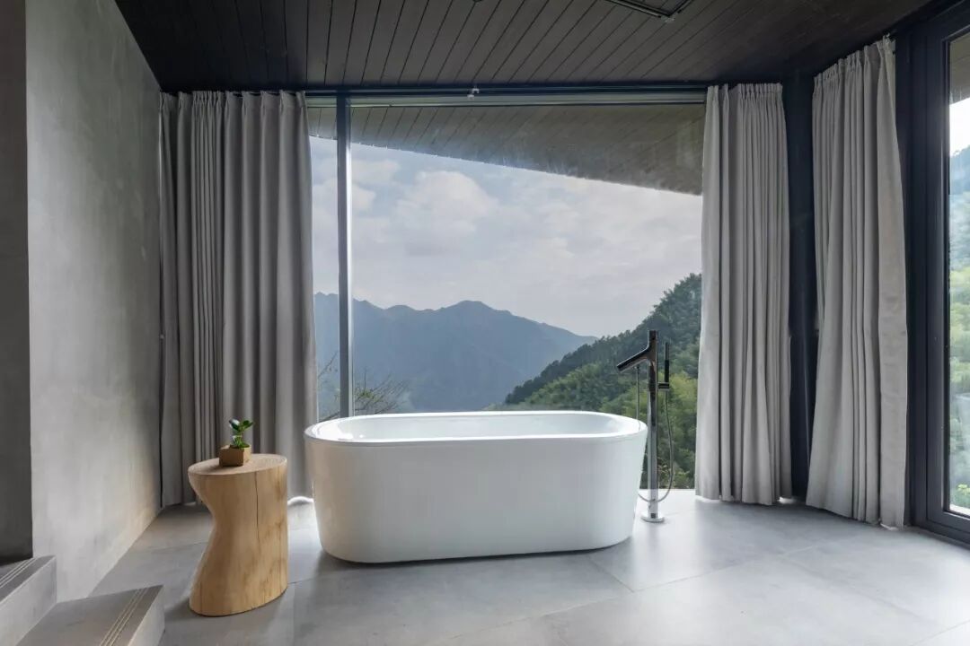 ▲ 开放的浴缸,可以透过落地窗欣赏自然风景 ©史佳鑫