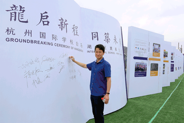 杭州国际学校面向社会公众和媒体,组织了名为“龙启新程 同筑未来”的开工奠基仪式。市教育局副局长毛伟民,区委副书记、区长李志龙,区人大常委会副主任万爱民,副区长包嘉颖,区政协副主席张爱莲,杭州国际学校董事会主席Larry Balli,董事会首席执行官成财年及line+设计团队代表等参加仪式。