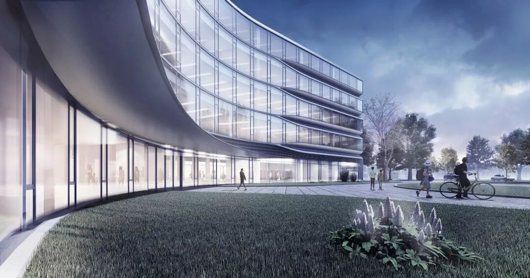 外立面采用阳极氧化铝板幕墙,提取融入中式灯笼的典型元素,形成褶皱的立面外形。外窗则采用横向穿孔外遮阳百叶,保证室内光照的均匀性和柔和度。百叶和金属外墙的叠加使建筑外立面产生在水平方向无限延展的视觉效果。![]()