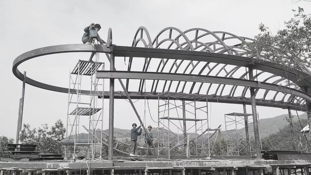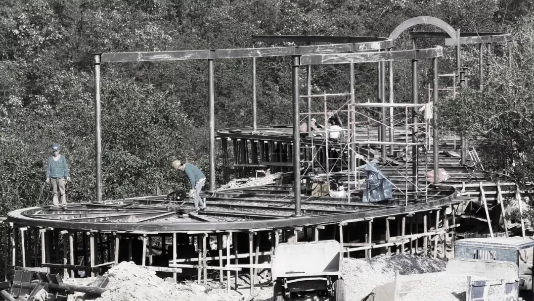 项目从2019年4月开始施工,2019年9月竣工验收,精确快捷地装配式轻钢建造体系确保了工期。而与此同时,设计工作贯穿了整个施工过程:现场的不确定因素迫使建筑师对场地重新感知,从而对设计作出相应更新与调整。