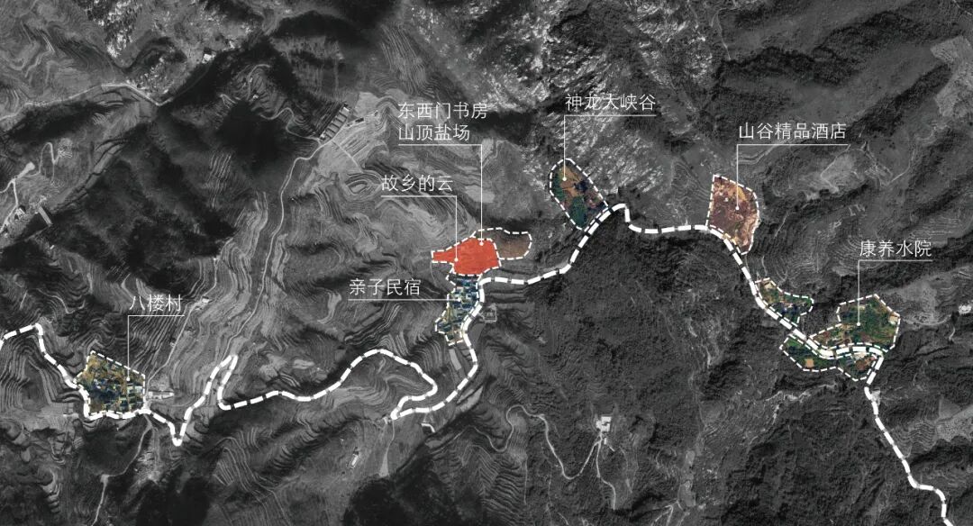 11月,我跟随鲁商团队来到山东泰安市岱岳区道朗镇,泰山余脉九女峰脚下的十九个村落被一条蜿蜒崎岖的盘山道路所串接,近年来,因交通闭塞、土地贫瘠等问题,村子里的年轻人大多被迫背井离乡,空心化日趋严重。面对棘手的现状,鲁商集团下定决心,希望能通过一定的前期资金投入和产业导入,实现零散小村的集群振兴。我的建议不要均匀投入,寻找至痛点,集中发力,以点带面,在短期内创造爆点,实现价值外延。经过大家的讨论,最终决定选择位置最偏僻、难度最大的省级贫困村东西门村作为突破点,展开更新改造。![]()