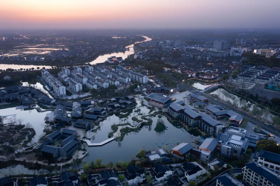 近年,受国际“慢城运动”影响,高淳主张在保护地域特性、自然生态和传统文化中稳步发展旅游休闲产业。紧邻高淳老街,固城湖畔,是由雅达集团投资建设、中青旅运营、line+主持设计的亲子度假文旅综合体——南京固城湾景区,是继乌镇和古北水镇后又一美好生活园区。作为景区的商业配套和城市界面,南京固城湾开元度假酒店及游客中心位于景区园外,是新老街区的转换空间。