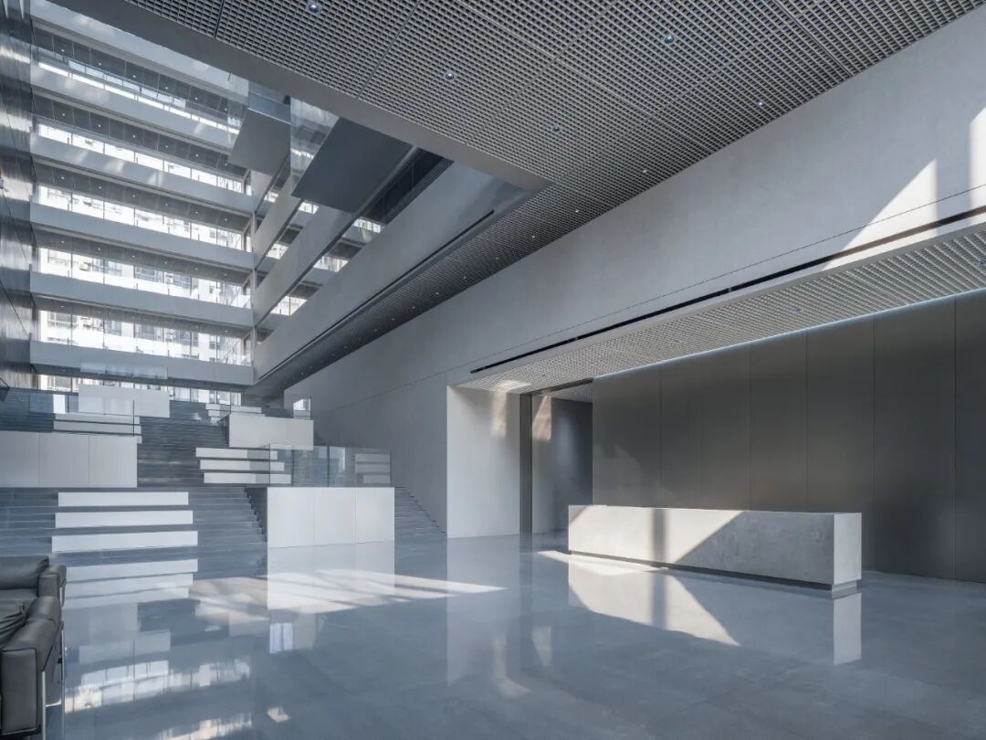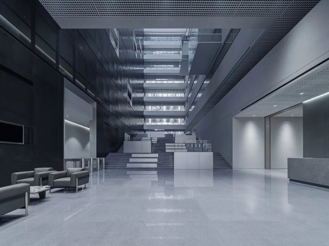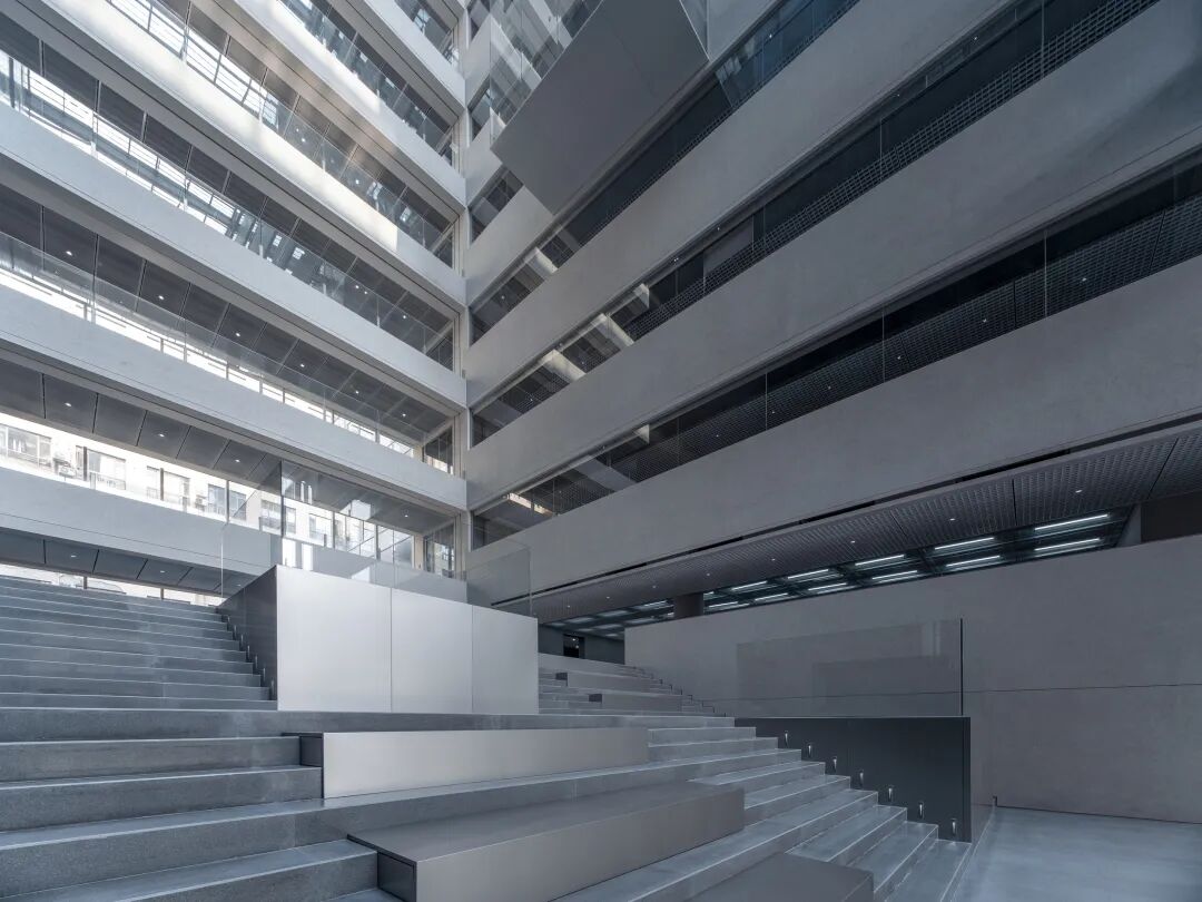 在灵动的节奏变化间,大台阶由此成为集企业展示、员工交流等复合功能一体的多变空间,展现企业对员工及来访者的欢迎与拥抱姿态。