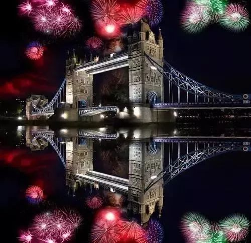 漫天烟花中更加美丽的伦敦塔桥