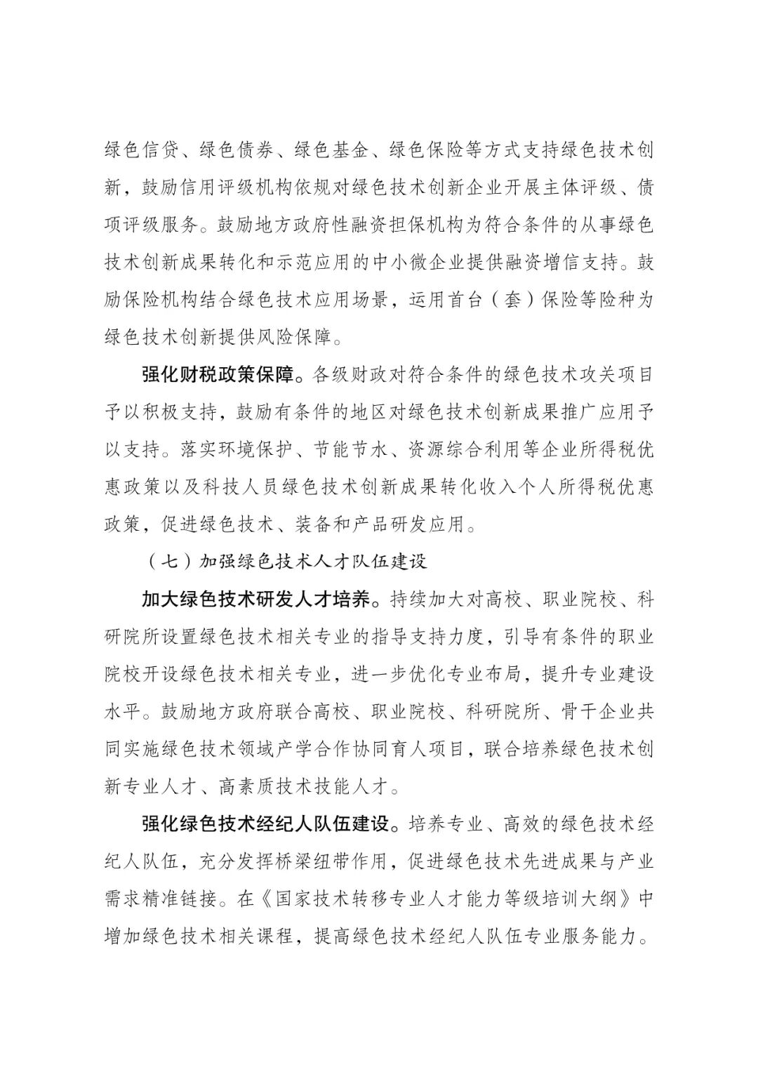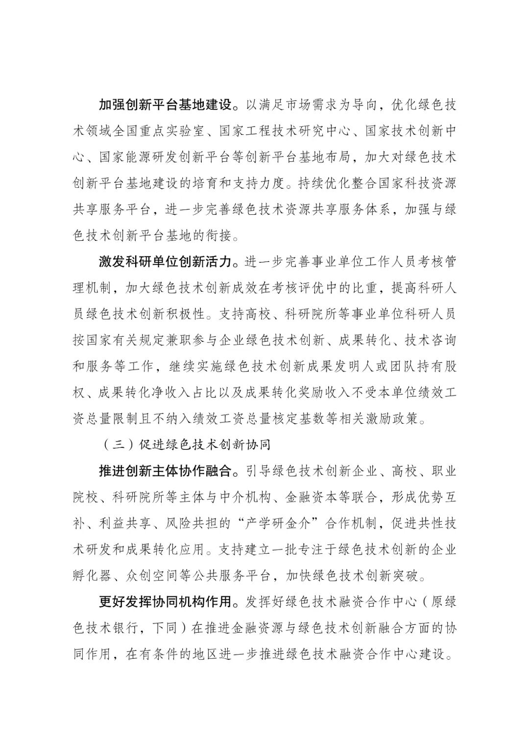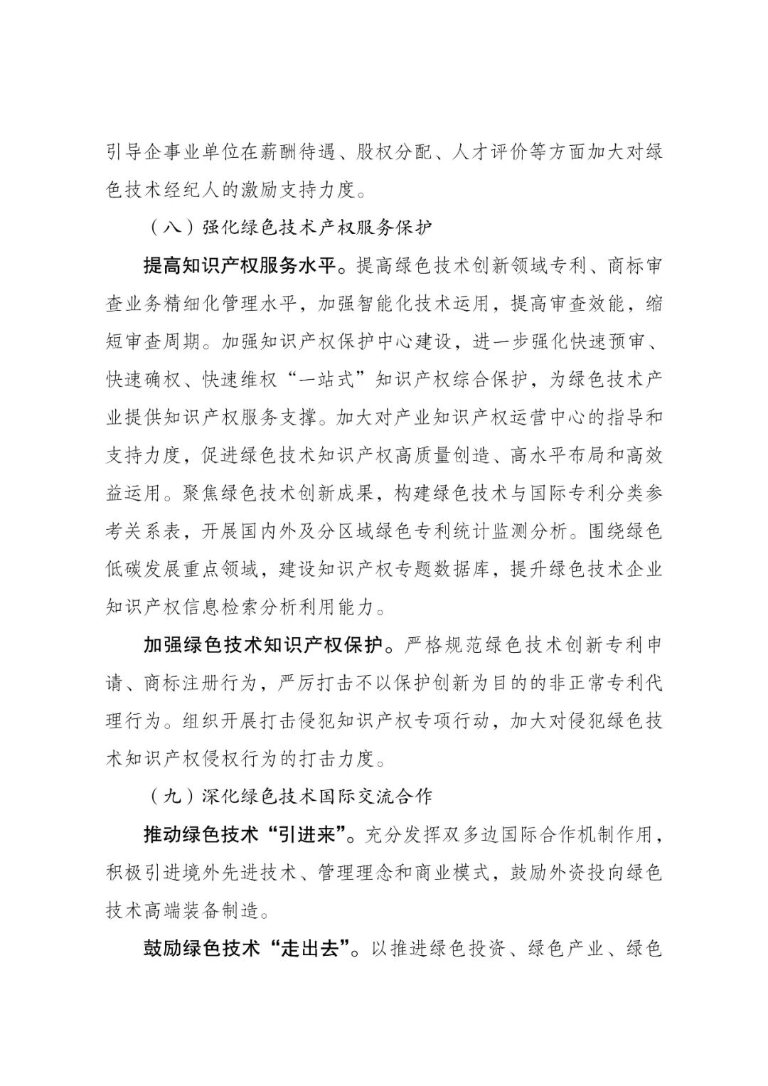 健全绿色技术推广机制。以节能降碳、清洁能源、资源节约集约循环利用、环境保护、生态保护修复等领域为重点,适时遴选先进适用绿色技术,发布绿色技术推广目录,明确技术使用范围、核心技术工艺、主要技术参数和综合效益。规范绿色技术遴选条件、遴选程序,加强目录内绿色技术跟踪管理,建立动态调整机制。通过向国家绿色技术交易平台和产业知识产权运营中心推送、组织开展绿色技术交流等方式,加快绿色技术推广应用。
