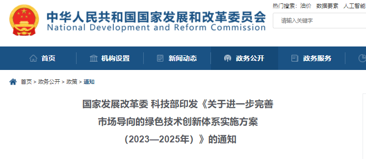 12月28日,国家发改委、科技部发布《关于进一步完善市场导向的绿色技术创新体系实施方案(2023—2025年)》(以下简称《方案》)的通知。