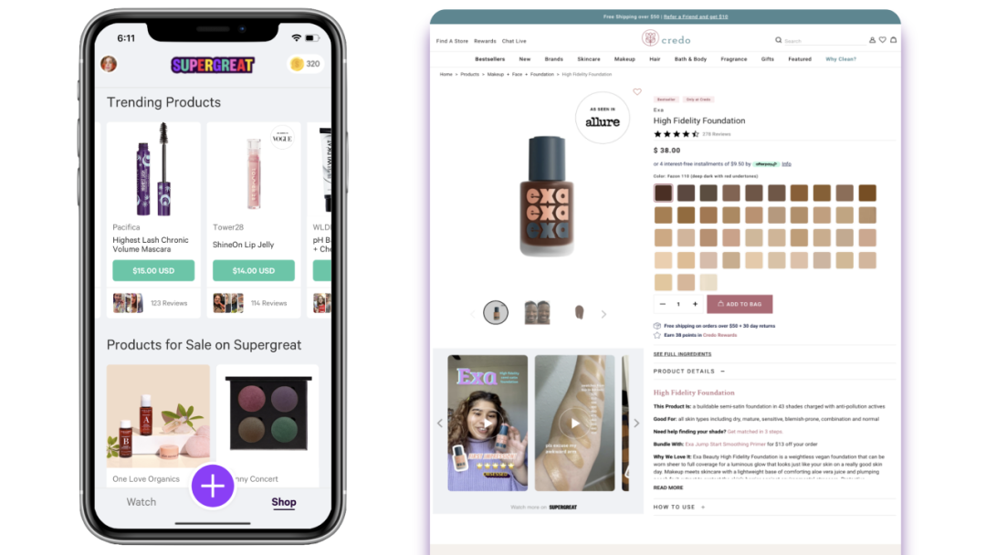 今年1月,美妆产品零售商Credo将与美妆评论社区Supergreat展开合作,这一为期三个月的合作伙伴关系将允许Supergreat的观众在其中通过直播购物购买Credo的商品。