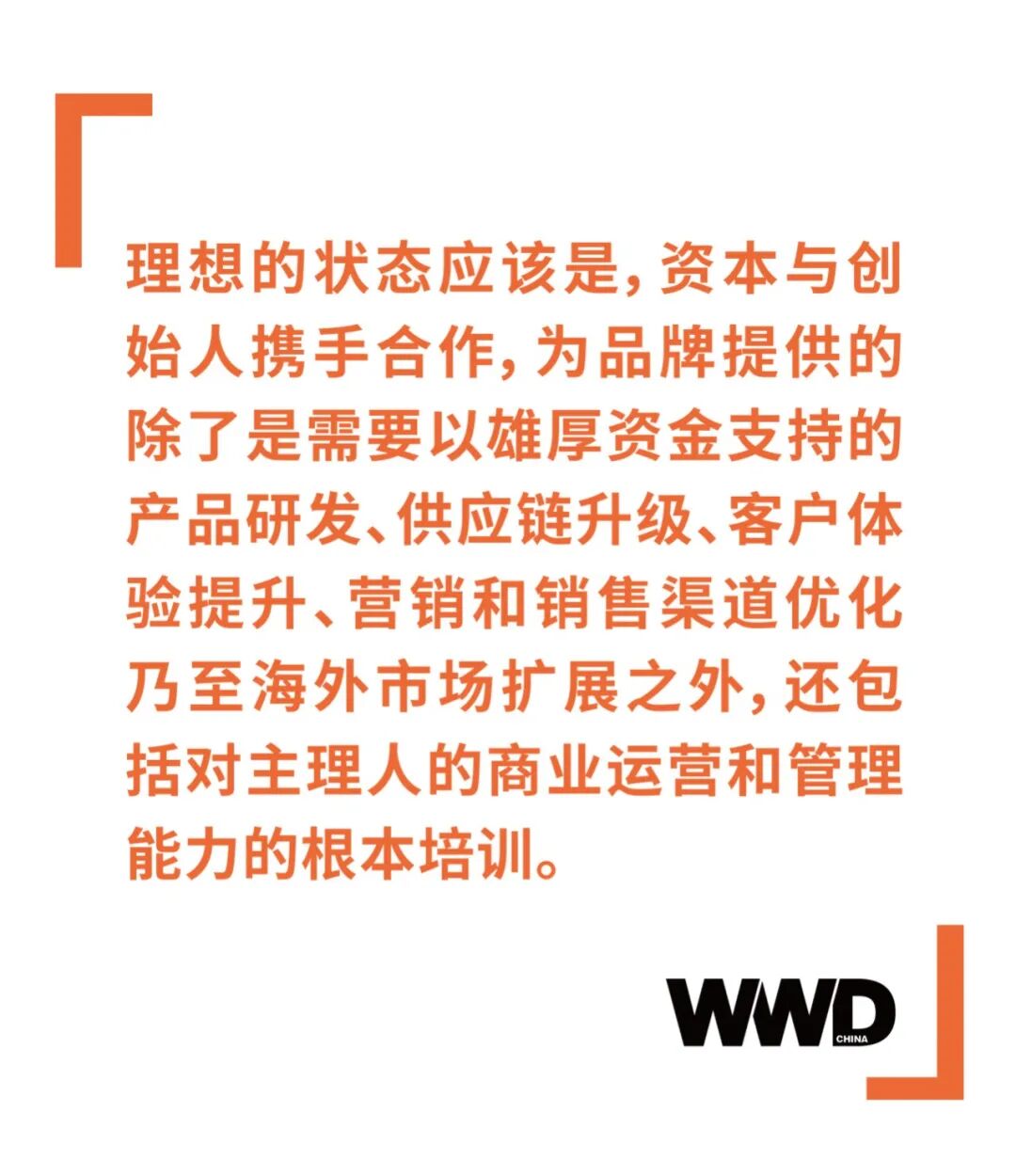 但是,“投身资本怀抱会不会改变品牌自身特色”也是主理人和消费者都在担忧的问题。理想的状态应该是,资本与创始人携手合作,为品牌提供的除了是需要以雄厚资金支持的产品研发、供应链升级、客户体验提升、营销和销售渠道优化乃至海外市场扩展之外,还包括对主理人的商业运营和管理能力的根本培训。就如同红衫资本中国基金投资合伙人 Angelica Cheung 张宇女士在作为 2021“WWD HONORS 成就者”特约推选人接受 WWD China 采访时所说的,“新锐设计师有创意、有天分,实现从 0 到 1 的创业相对容易,但是当他们走向更大的规模,经营、管理、做生意的策略……所有的一切都将变得复杂。”