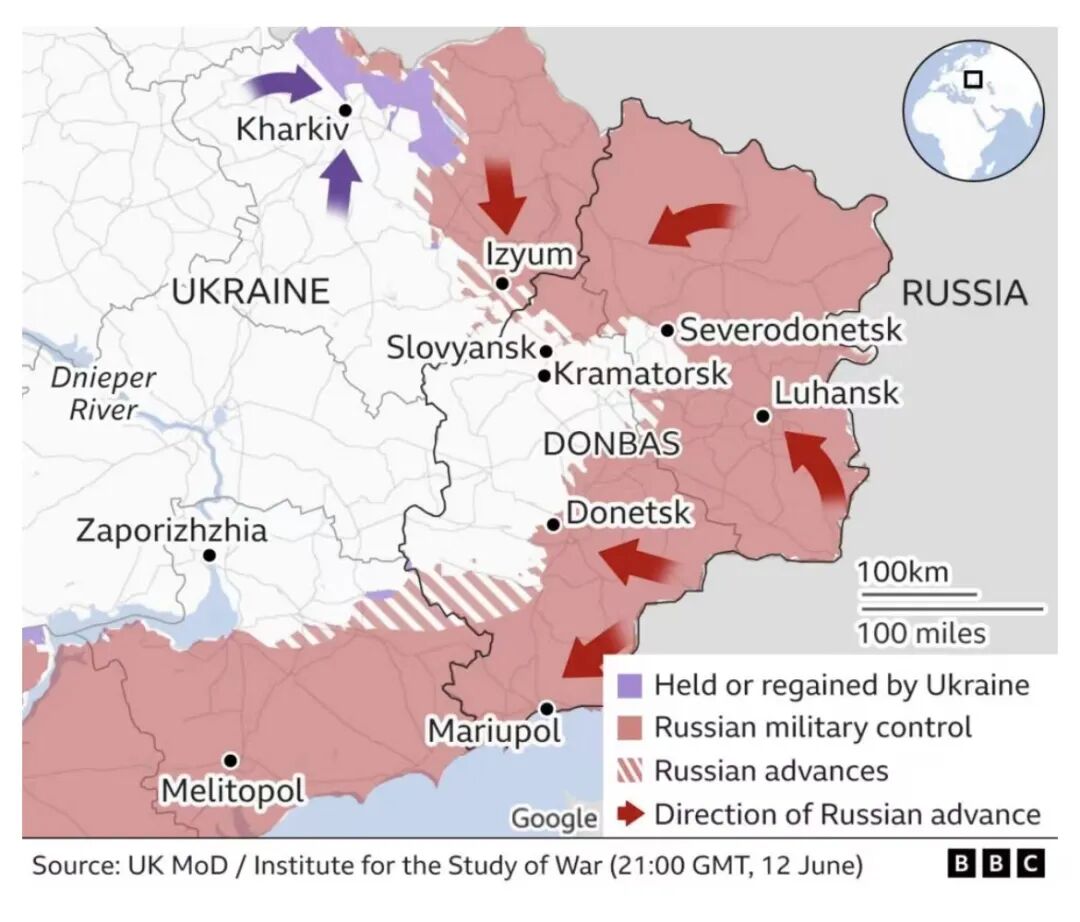 6月上旬,俄罗斯国防部宣布顿巴斯的胜利正在临近,“当地乌军在人力、武器装备方面遭受重大损失”。