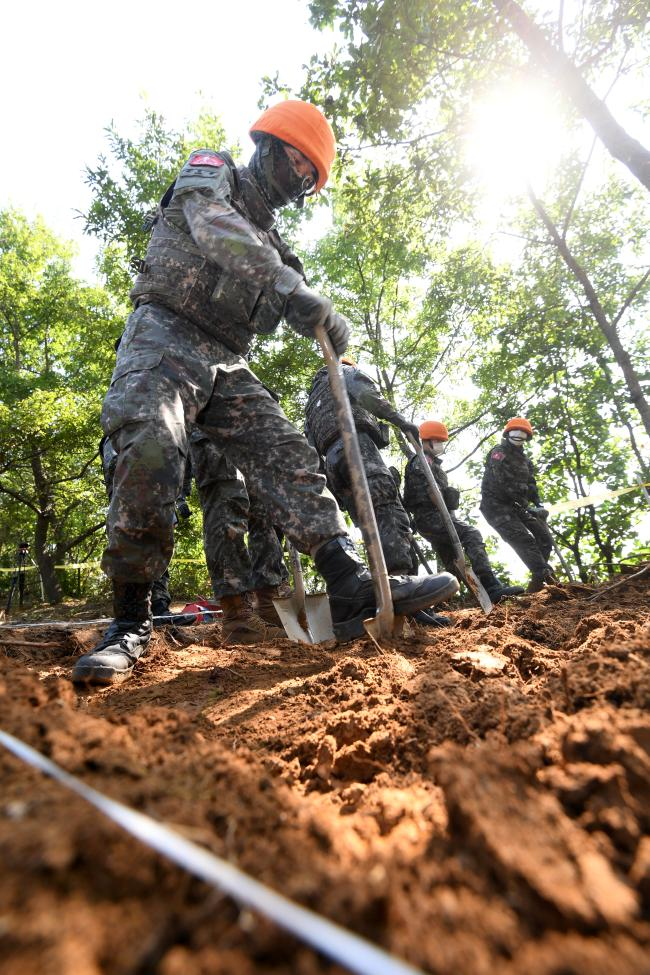 参加挖掘的士兵们深知任务严峻,高永仁(音译)大尉说:“今年4月遗骸挖掘出征仪式后,从作战第一天开始就找到了手榴弹、高炸弹等十多枚爆炸物。”