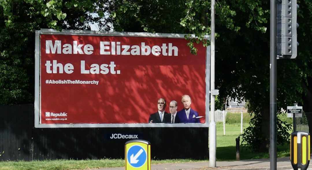 英国反君主制组织“共和国”(Republic)打算在禧年庆典期间发起“不要再来一个70年”运动,呼吁废除君主制。该组织还在多地投放广告牌,写着“让伊丽莎白成为最后一任(Make Elizabeth the Last)”的口号。