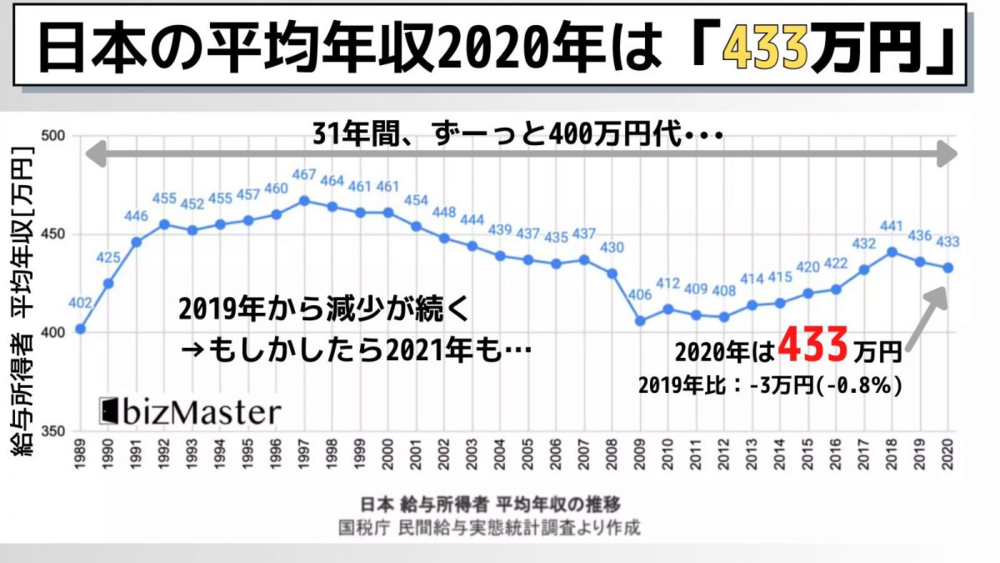 在30年间年收入增长报表里,别的国家的平均年收入走势都在昂扬向上,只有日本是一个平面。在30年间,中国居民人均可支配收入达到了近40倍增长,但日本人的工资却是鲜有波动。