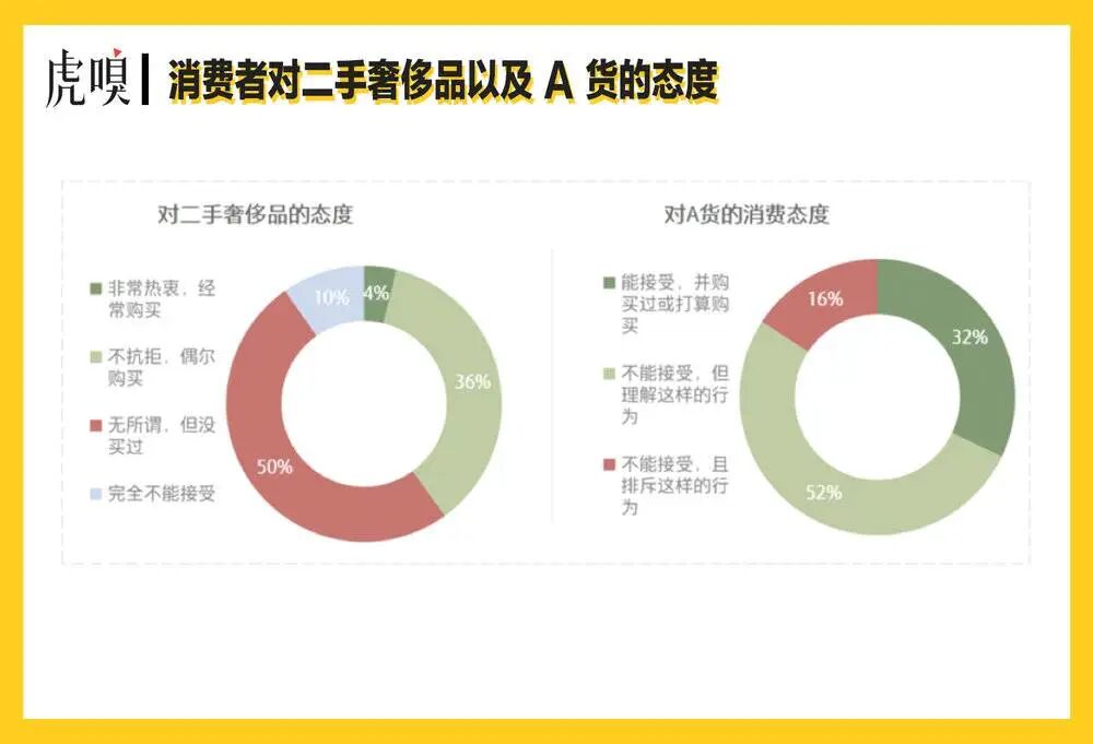 而接受A货与否这件事,与收入有关联性。数据观察中,A货的接受程度对于月薪5万以下消费者占比都在三成左右,在而月薪5万元以上群体中的接受度仅为两成。