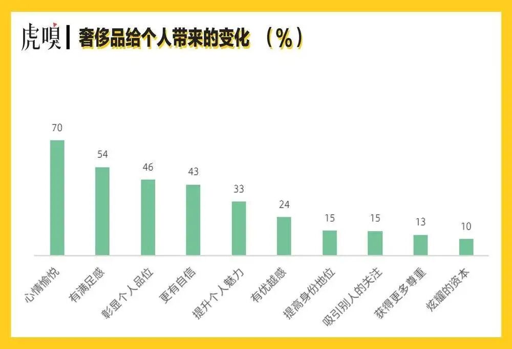 而在80后90后消费群体中,奢侈品还承载了更多职场工具的意味,需要用它们营造靠谱、体面的形象,43%的受访用户认为奢侈品能让自己更有自信,15%的受访者认为奢侈品能提升自己的社会地位。