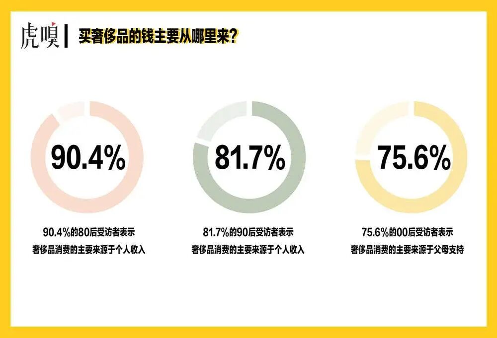 而75.6%的00后受访者表示,他们的奢侈品主要消费来自父母的资金支持。