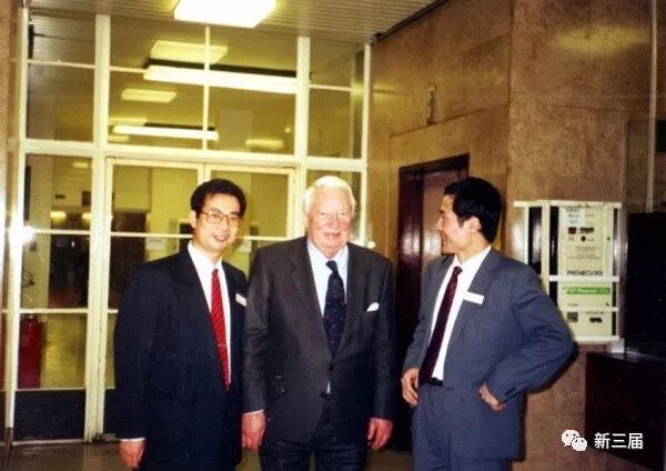 北大校友田军、朱力为(数学系76级)与英国前首相希思在一起