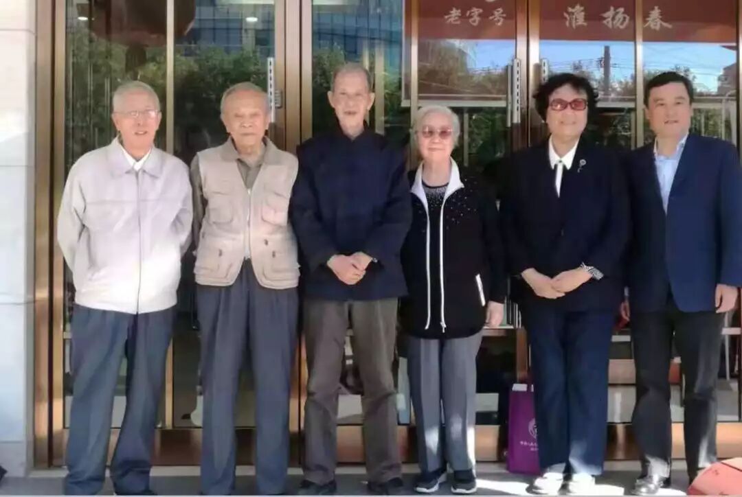 2018年10月8日,何梓华先生(左二)应雷跃捷老师之邀,与赵玉明、吴高福、曹璐、成美等中国新闻教育界前辈一起,相聚共话改革开放四十年的中国新闻教育