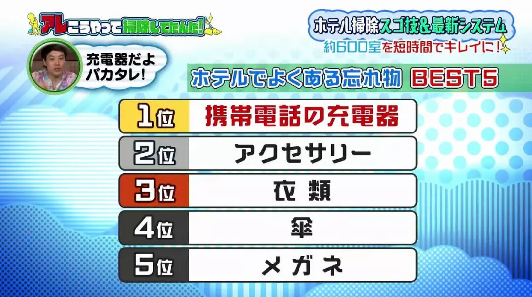 “酒店最容易落的东西”排行榜