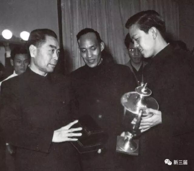 周恩来贺龙接见兵乒球队员