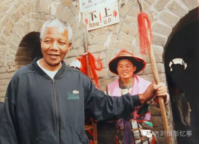曼德拉还参观了八达岭长城。当时比较奇怪的是长城上来了一队明朝打扮的“官军”,手里拿着红缨枪十米八米一个在那儿站岗放哨。老爷子可能感到很新鲜,就过去和假扮成明朝官军的小伙子聊天,顺便和了个影。