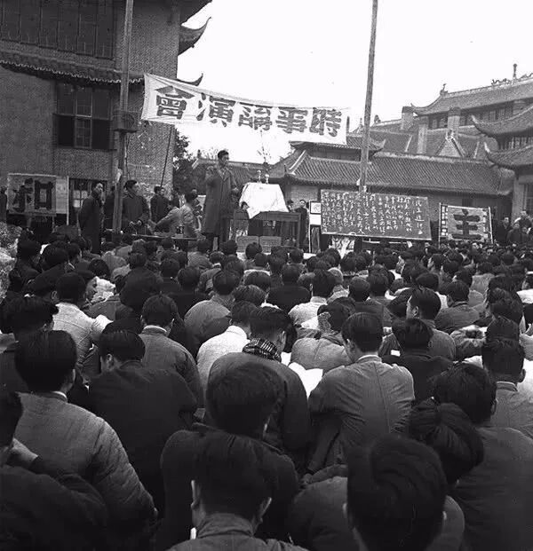 1946年2月,四川成都,华西联大时事讲演会。孙明经摄