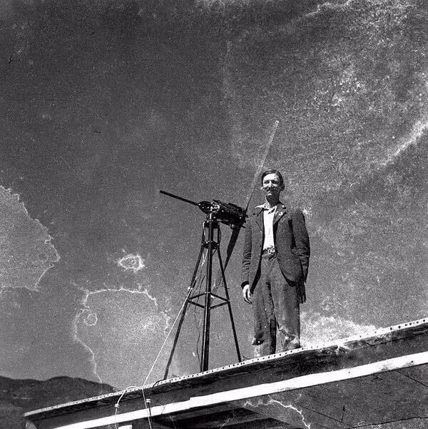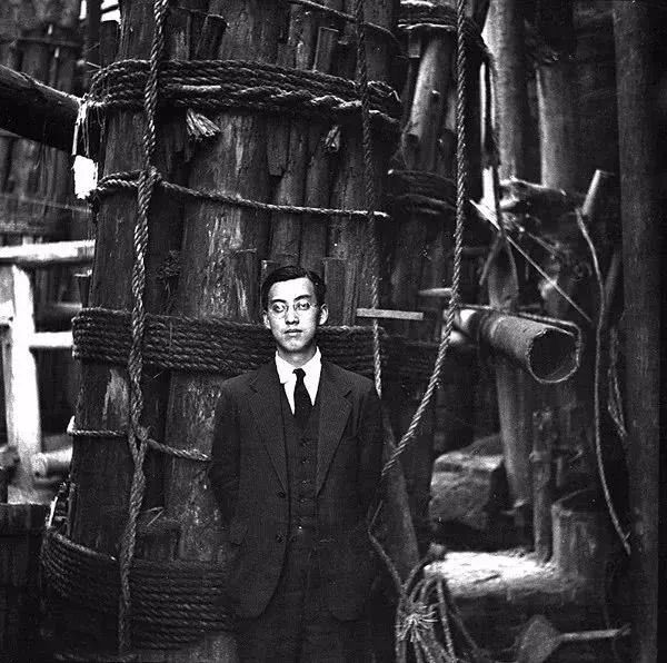 1938年4月,孙明经在自贡盐井井架前的自拍照。孙明经摄