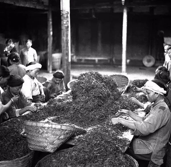 1939年6月,四川雅安第五茶场女工在捡茶。孙明经摄