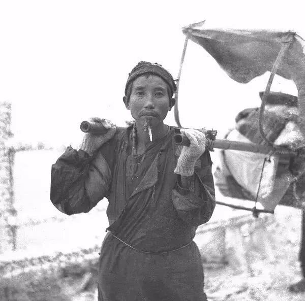 1939年7月,四川汉源县大相岭,7月山顶遍地冰雪,滑竿夫的胡须上居然挂着冰凌。孙明经摄