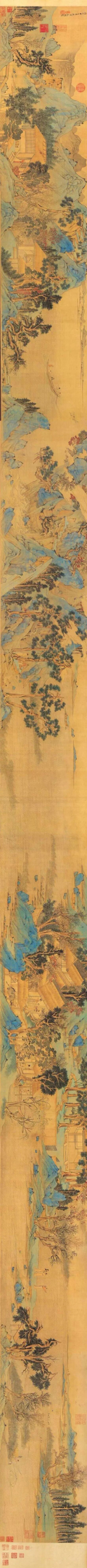 观仇英的画,总觉得他是在天上俯瞰人世,他的画都是在天上画的,他画的是天界,也是人间,是天界的人间。他能让天界的幻象和人间的万象融汇于他的笔墨之间,映现在他的青绿山水的漫漫画幅中。访明四家,如访仙人,如入仙境。沈周是飘然世外的神仙中人,文徵明是羽化而登仙,唐寅也是桃花仙主,而仇英~~神逸,灵致,旷世,超绝,看他的画,看他的人生,他更是真正的天界仙人。仇英,字实父,我原不解他为何偏偏自号十洲。近读清人顾复《平生壮观》,原来顾复早已言之:十洲,仙境也,焉知仇英不是从蓬莱仙府中降落人间来作画的呢?顾复甚至还说:因为仇英号十洲,所以他至今未死,只是他的魂魄又归去了仙府。也许,仇英仙逝后真的没有陨落世间。问仇英魂归何处?其实,就在他的《清明上河图》的漫漫长幅中。展开这幅青绿山水长卷,时时可以对视到仇英幽然的目光,处处可以感受到一个艺术的神灵还在搏动的脉息。大鸟在天空折翅了,清明时分,他的生命的灵羽就散落在这丝丝缕缕的笔触中。于是啊,再过若干时日,迎着清明的纷纷细雨,我真的还会再来,探看仇英手植的银杏树,神游仇英青绿山水画幅中的苏州城,寻访苏州城中飘逸的仇英的仙灵……![]()
