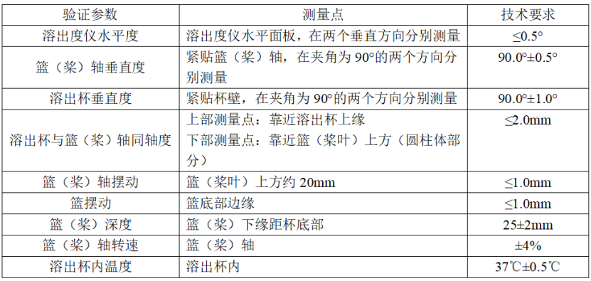 溶出度仪机械验证应满足如下要求: