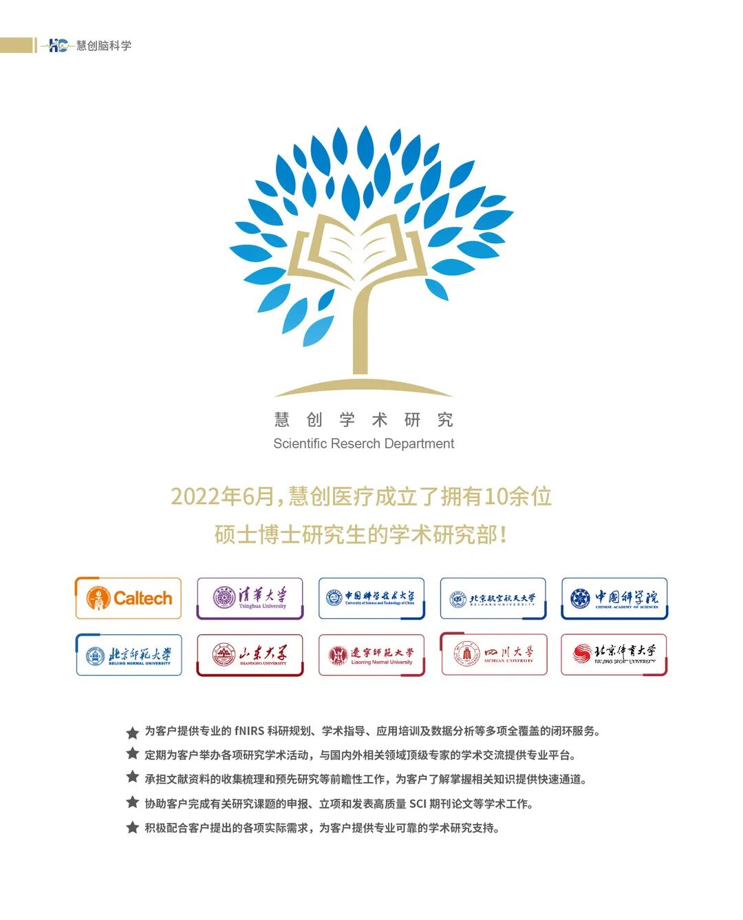 成立了拥有10余位专业博硕士的学术研究部可对fNIRS临床与科研开展精准的高水平服务