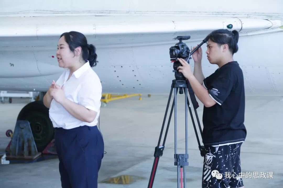 结合《思想道德修养与法律基础》绪论中我们处在中国特色社会主义新时代和作为时代新人要以民族复兴为己任两节内容,我们开始思考作为空军的航修士官生,我们应该担任什么样的社会责任。正好在我们思修课的实践课程中,老师曾带领我们参观过学校的停机坪航空馆文物馆,课程激发了我们努力学习报效国家的志向,也为我们前途指明了方向。这一节思修的实践课为我们的创作带来了灵感。