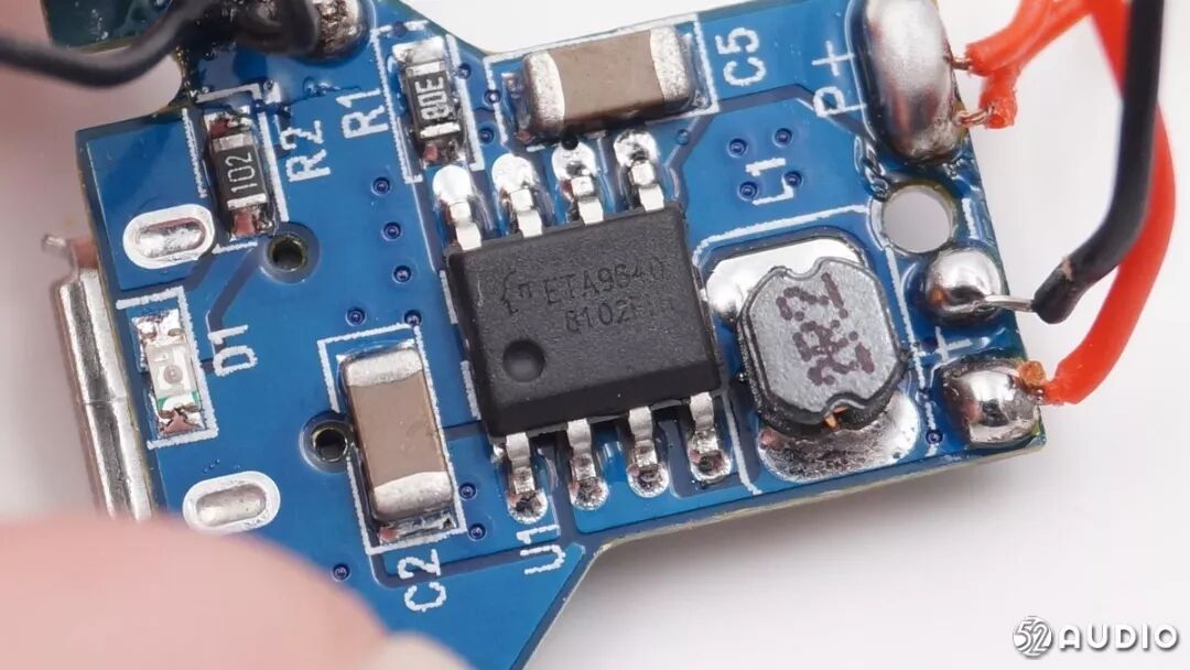 通过我爱音频网拆解发现,TWS蓝牙耳机充电盒内部构造是一个小容量的充电宝,包含了充放电电路、保护电路、电池三部分。相比充电宝电路而言,对小电流输出效率和静态低功耗的控制显得格外重要。