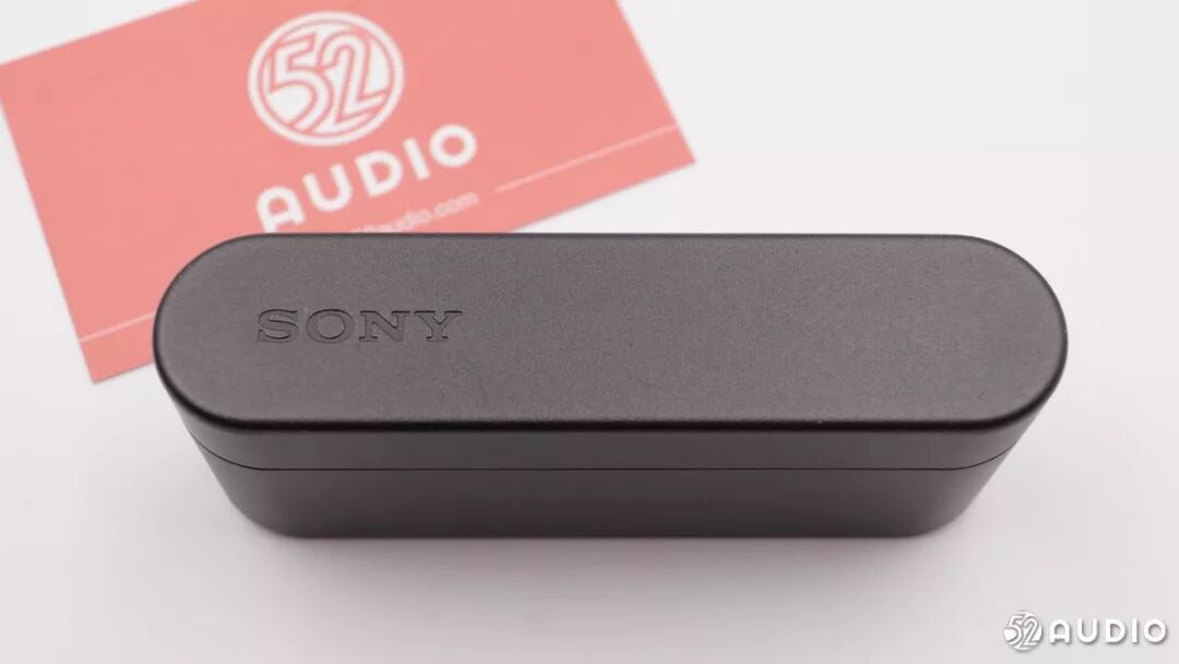 铝合金材质,横截面为椭圆形的耳机充电盒,顶部左侧有冲压成型的“SONY”LOGO。