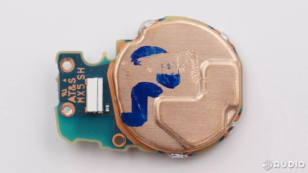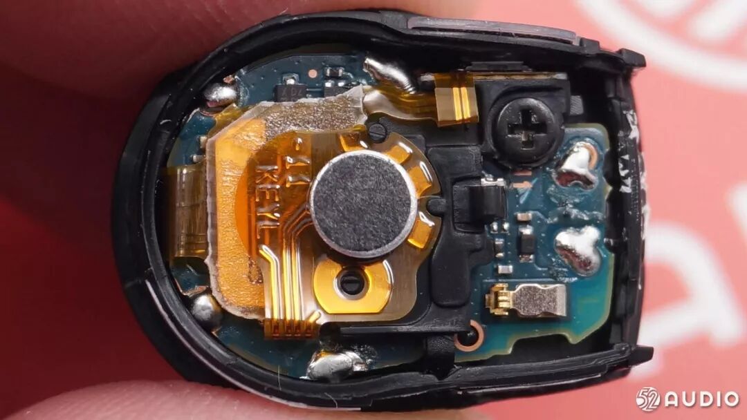 正面特写,FPC上面的电容式拾音器还有蓝牙天线的触点。