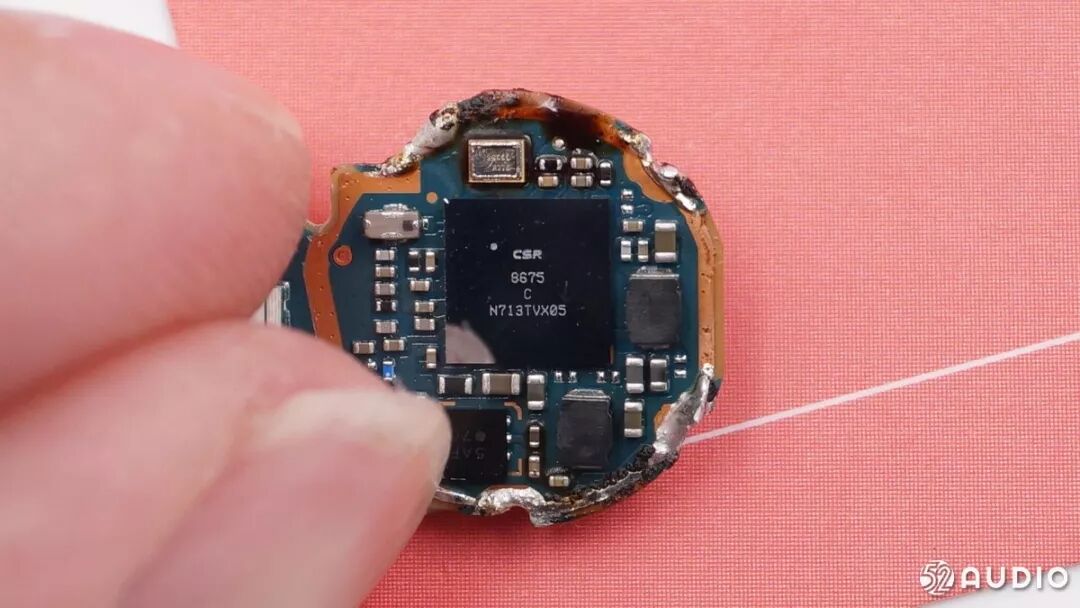2、通过拆解,发现这款耳机盒充电盒的用料上乘、做工精细,耳机内部空间利用率高;采用CSR8675方案,支持蓝牙V4.2,内置集成式高性能立体声DAC和ADC,还搭载了先进的主动降噪技术,提升用户使用体验。这款高集成度的芯片节省了空间,并且降低了整体功耗,让耳机更轻更小还能保持续航时间。