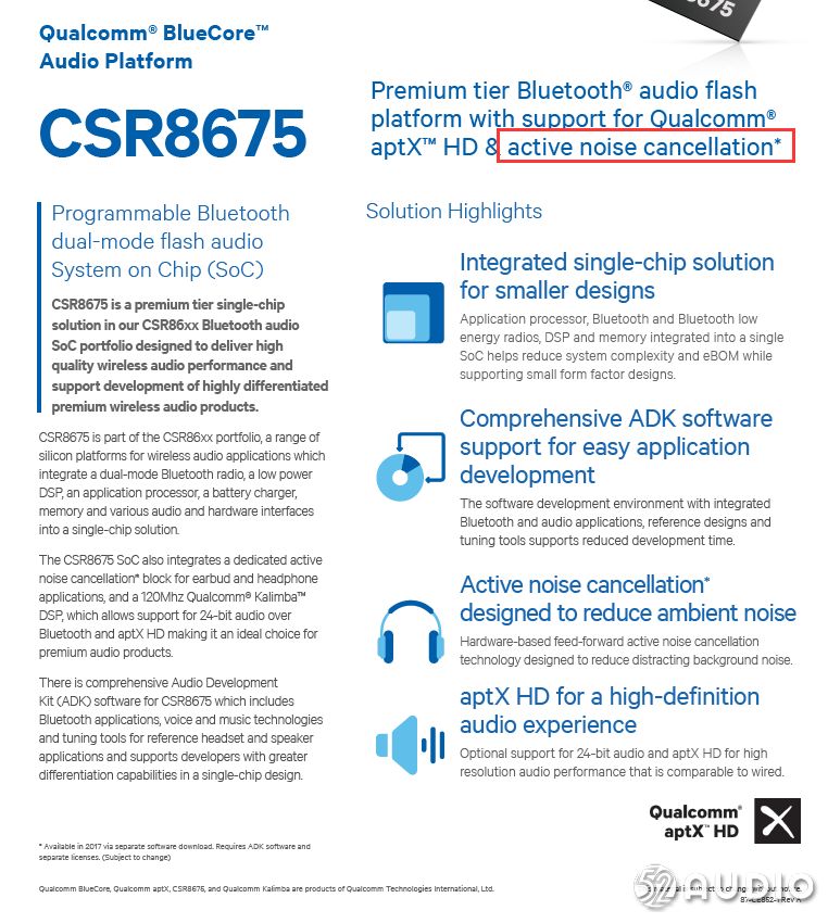 Sony WF-1000X使用了CSR8675的主动降噪,我爱音频网分析,所谓的信仰降噪实际上高通芯片的一部分功能。