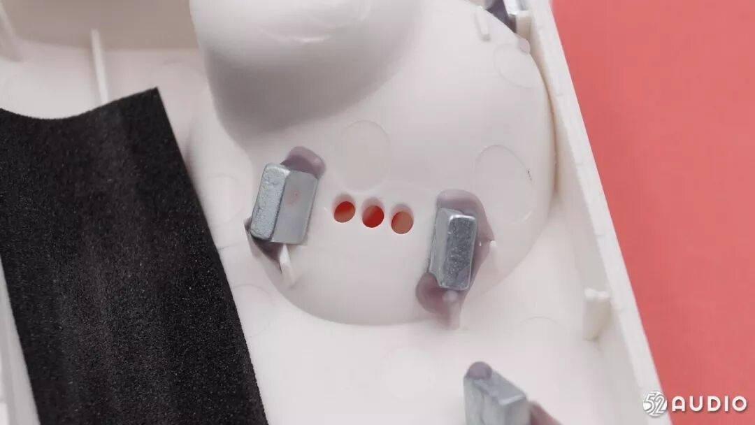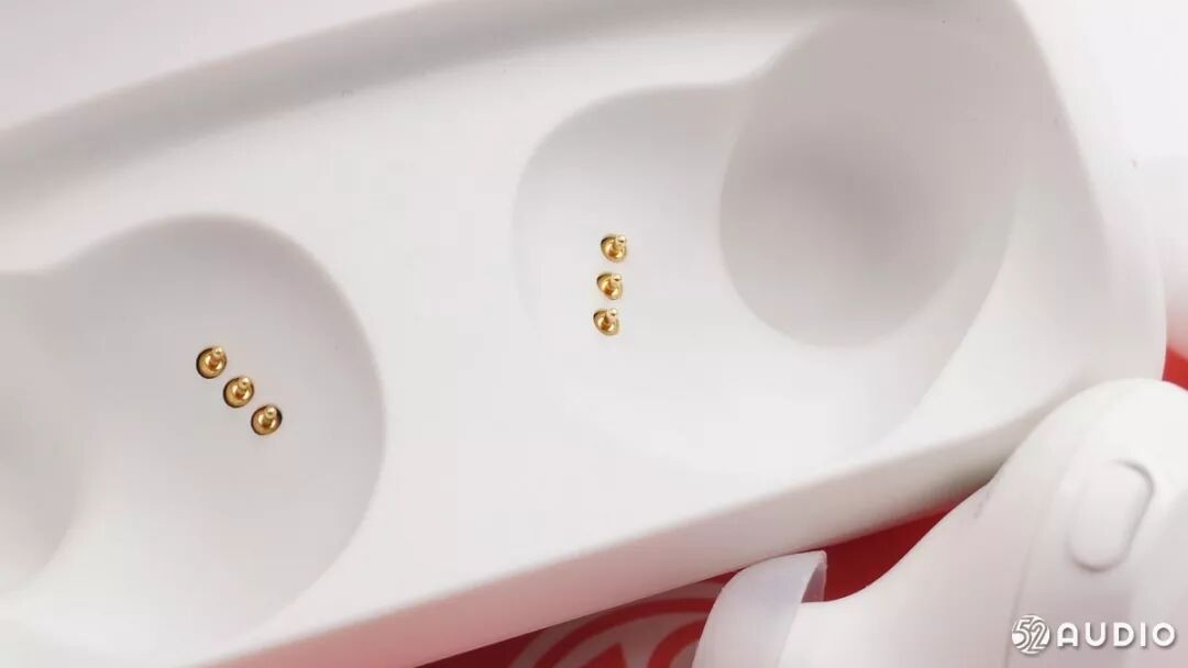 两个耳机槽后面都有磁铁,辅助耳机稳固地放在盒子内充电。