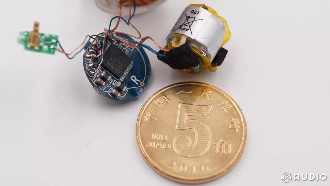 耳机的主板、电池都比五角钱硬币还小。