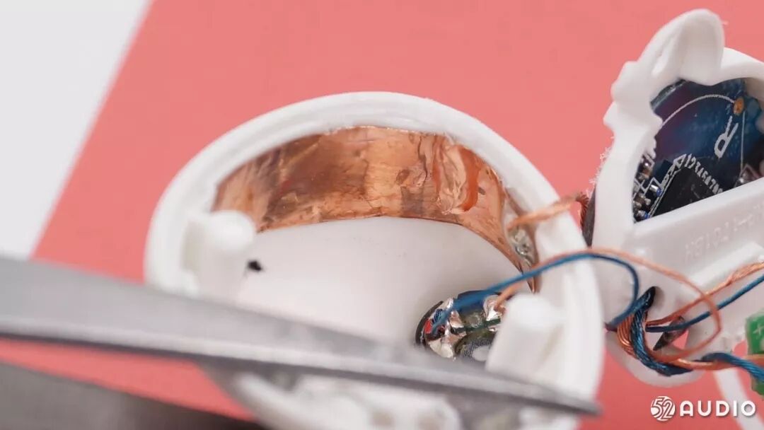 粘附在耳机内壁上的一块铜片,用于接地。
