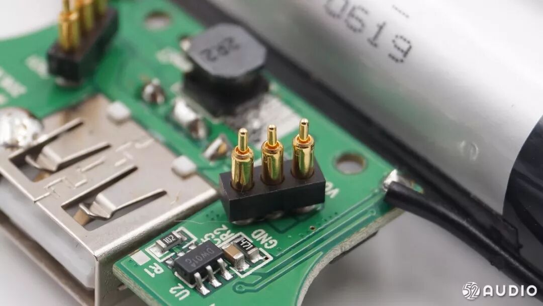 为耳机充电的3pin弹簧插座做工优良,焊点饱满。