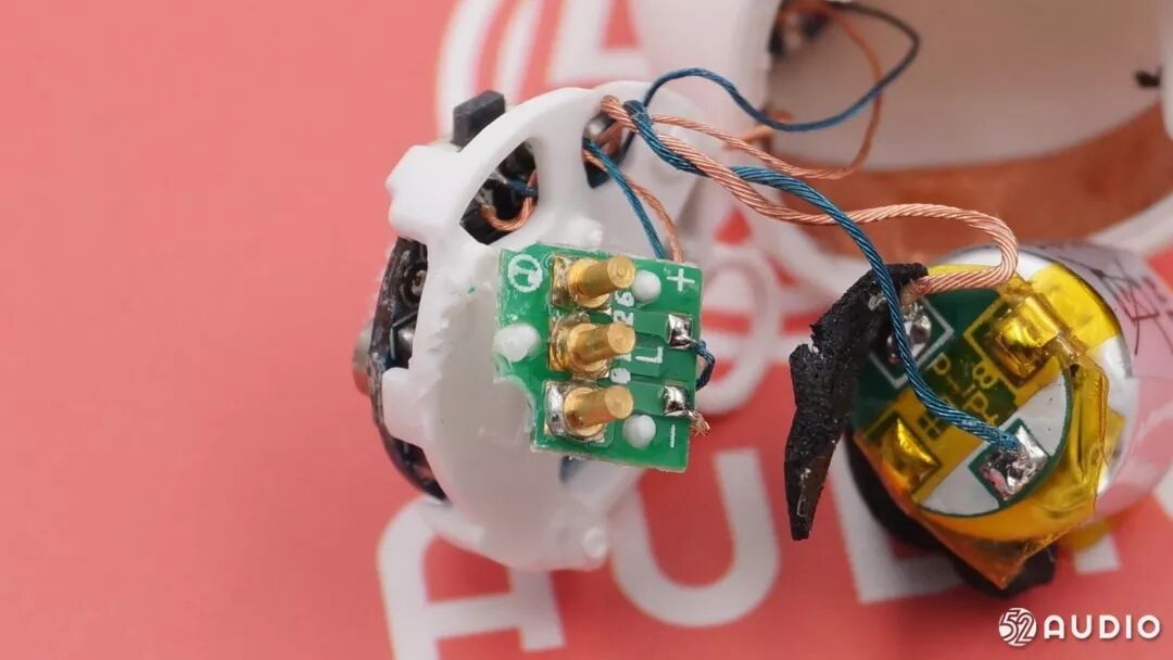 3pin触点的铜柱较厚,表面的车削加工不是很平整,触点的PCB版通过漆包线与耳机主板连接。