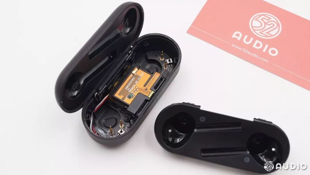 打开耳机壳,可以看到单元只占很小的一部分位置,耳机外壳内部是电路和电池。