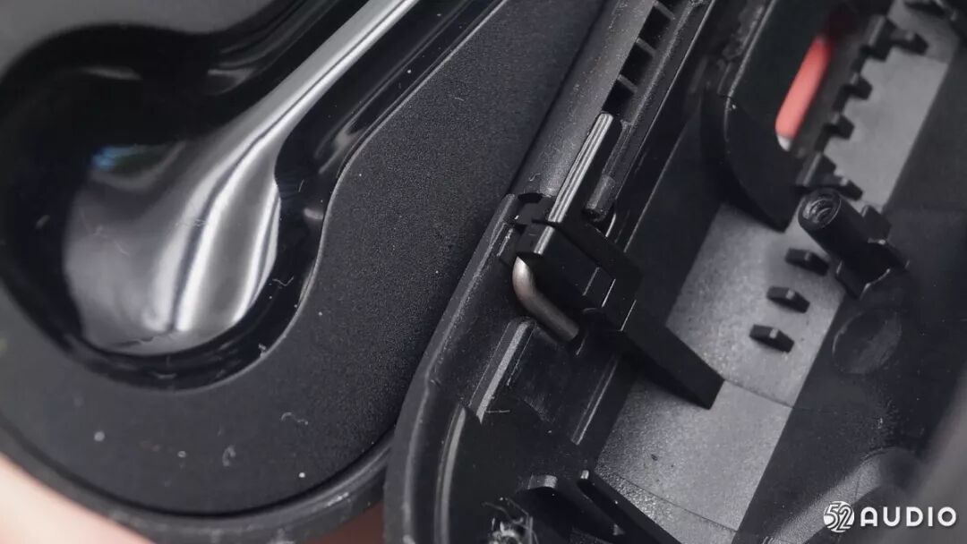 充电插针和微动开关,开关用来检测耳机是否放入,开始充电。