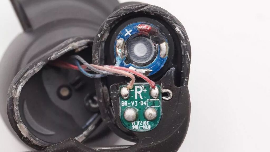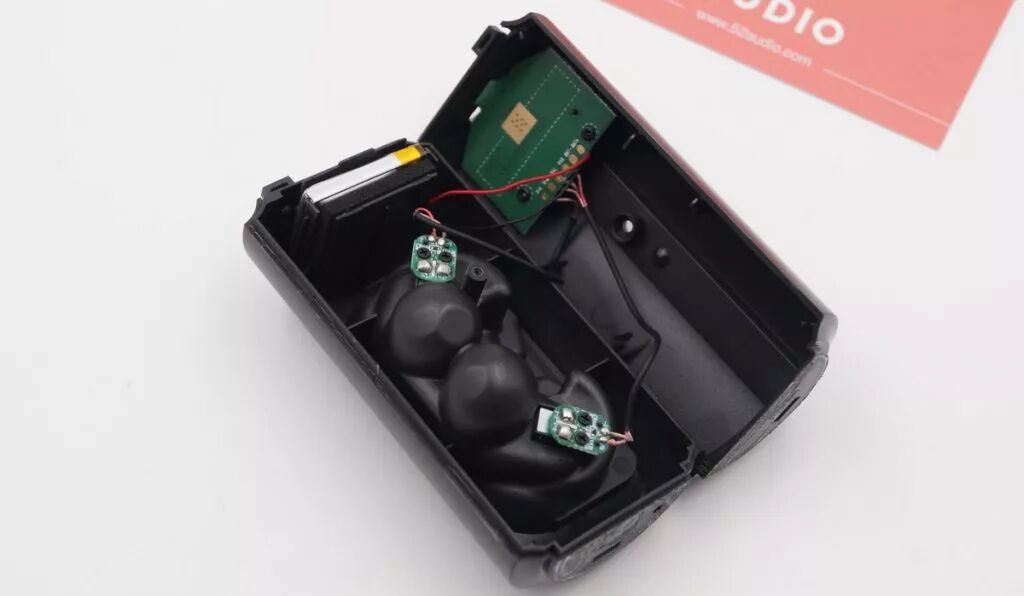 经过我爱音频网拆解,动圈扬声器部分为独立的一个模块,与电池和主板隔离在不同腔体内。
