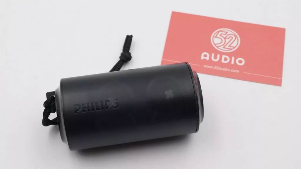PHILIPS 飞利浦 SHB4385采用圆形半透明电池仓盖设计,开启方式为推拉式,从侧面推开,产品自带一根尼龙挂绳。