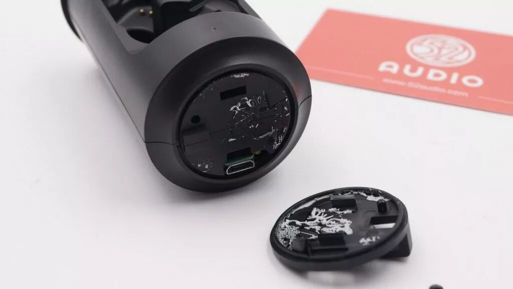 据我爱音频网拆解,耳机充电盒内采用一块小磁铁,用于辅助耳机充电时准确牢固地定位。